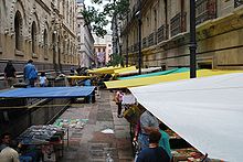 In addition, "tianguis" or mobile markets, set up shop on city streets in many neighborhoods, depending on the day of the week. Sundays are the day in which the largest number of these markets are set-up. The stalls generally use awnings of a single colour or shade (pink and red, for example), making them easily identifiable from several blocks away.