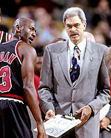 The Bulls entered the 1989–90 season as a team on the rise, with their core group of Jordan and young improving players like Scottie Pippen and Horace Grant, and under the guidance of new coach Phil Jackson. Jordan averaged a league leading 33.6 ppg on 52.6% shooting, to go with 6.9 rpg and 6.3 apg in leading the Bulls to a 55–27 record. They again advanced to the Eastern Conference Finals beating the Bucks and Philadelphia 76ers en route. However, despite pushing the series to seven games, the Bulls lost to the Pistons for the third consecutive season.
