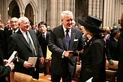Gorbachev (left) with former Canadian Prime Minister Brian Mulroney and former British Prime Minister Margaret Thatcher at the funeral of Ronald Reagan, June 11, 2004