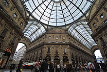From top, clockwise: Porta Nuova Business District, Milan Cathedral, San Siro Stadium, Parco Sempione with the Arch of Peace in the background, Galleria Vittorio Emanuele II