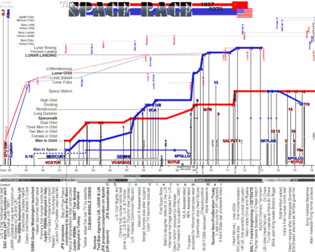 While NASA stressed peaceful and scientific uses for these rockets, their use in various lunar exploration efforts also had secondary goal of realistic, goal-oriented testing of the missiles themselves and development of associated infrastructure, just as the Soviets were doing with their R-7. The tight schedules and lofty goals selected by NASA for lunar exploration also had an undeniable element of generating counter-propaganda to show to other countries that American technological prowess was the equal and even superior to that of the Soviets.