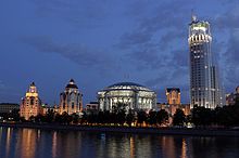 The " Moscow International Business Centre" is a projected new part of central Moscow. Geographically situated in Presnensky District, located at the Third Ring, the Moscow City area is under intense development. The goal of MIBC "Moscow City" is to create a zone, the first in Russia, and in all of Eastern Europe, that will combine business activity, living space and entertainment. It will be a city within a city. The project was conceived by the Moscow government in 1992.
