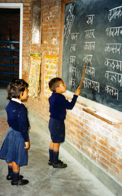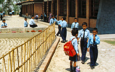 The school is a comprehensive school with students from the age of four to the age of eighteen (two years of nursery school plus twelve years of school). The older students look after the younger ones and help them with their school work. SOS children are taught together with children from the neighbourhood, which helps their integration into society later on. After the tenth form, students take their GCSE exams.. Students who do not pass this exam often opt for vocational training. Others then take their A' levels after the twelfth form and then go on to university. The introduction of computer education has made students acquainted with modern technology. Computer lessons start in the seventh form. The reputation of the SOS Schools in Nepal is so good that they are now used as model schools for the state school system.