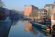 To the south is Broadmarsh Shopping Centre. The Canal-side further south of this is adjacent to the Nottingham railway station and home to numerous redeveloped 19th Century industrial buildings reused as bars and restaurants.