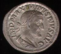 A Roman denarius, a standardized silver coin.