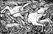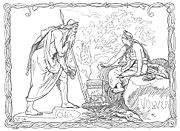 Snorri Sturluson feels compelled to give a rational account of the Æsir in the prologue of his Prose Edda. In this scenario, Snorri speculates that Odin and his peers were originally refugees from the Anatolian city of Troy, folk etymologizing Æsir as derived from the word Asia. In any case, Snorri's writing (particularly in Heimskringla) tries to maintain an essentially scholastic neutrality. That Snorri was correct was one of the last of Thor Heyerdahl's archeoanthropological theories, forming the basis for his Jakten på Odin. Odin was the first of the Aesir gods in Norse Mythology. (B.K.)
