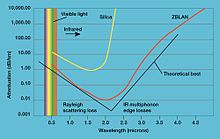 Attenuation in fiber optics, also known as transmission loss, is the reduction in intensity of the light beam (or signal) as it travels through the transmission medium. Attenuation coefficients in fiber optics usually use units of dB/km through the medium due to the relatively high quality of transparency of modern optical transmission media. The medium is usually a fiber of silica glass that confines the incident light beam to the inside. Attenuation is an important factor limiting the transmission of a digital signal across large distances. Thus, much research has gone into both limiting the attenuation and maximizing the amplification of the optical signal. Empirical research has shown that attenuation in optical fibre is caused primarily by both scattering and absorption.