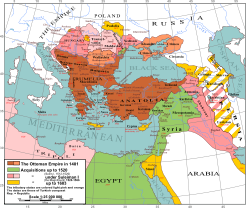 Expansion of the Ottoman Empire between 1481 and 1683 (excluding Algeria, Sudan, Hejaz, Asir and Yemen)