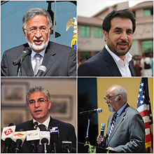 | 1st row: Ibrahim Lodi · Sher Shah Suri · Mirwais Hotak 2nd row: Ahmad Shah Durrani · Dost Mohammad Khan · Ayub Khan 3rd row: Abdur Rahman Khan · Amanullah Khan · Soraya Tarzi 4th row: Dost Mohammad Khan of Bhopal · Bacha Khan · Zahir Shah 5th row: Zalmay Khalilzad · Hamid Karzai · Shahid Afridi |
