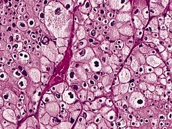 A renal cell carcinoma (chromophobe type) viewed on a hematoxylin & eosin stained slide