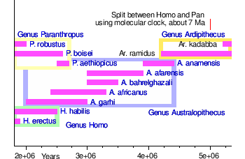 Both marine and continental faunas were essentially modern, although continental faunas were a bit more primitive than today. The first recognizable hominins, the australopithecines, appeared in the Pliocene.