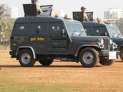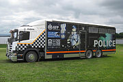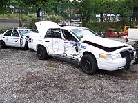 Police vehicles are used for detaining, patrolling and transporting. The common Police patrol vehicle is an improved four door sedan (saloon in British English). Police vehicles are usually marked with appropriate logos and are equipped with sirens and lightbars to aid in making others aware of police presence.