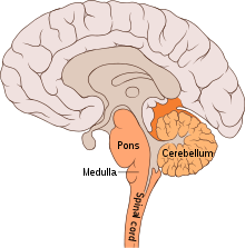 In around 1% of infections, poliovirus spreads along certain nerve fibre pathways, preferentially replicating in and destroying motor neurons within the spinal cord, brain stem, or motor cortex. This leads to the development of paralytic poliomyelitis, the various forms of which (spinal, bulbar, and bulbospinal) vary only with the amount of neuronal damage and inflammation that occurs, and the region of the CNS affected.
