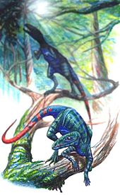• Rhamphorhynchoidea (Plieninger, 1901): A group of early, basal ("primitive") pterosaurs, many of which had long tails and short metacarpal bones in the wing. They appeared in the Late Triassic period, and lasted until the late Jurassic. Rhamphorhynchoidea is a paraphyletic group (since the pterodactyloids evolved directly from them and not from a common ancestor), so with the increasing use of cladistics it has fallen out of favour in most technical literature.