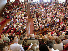 A local congregation in the unprogrammed tradition is called a meeting, or a monthly meeting (e.g., Smalltown Meeting or Smalltown Monthly Meeting). The reference to "monthly" is because the meeting meets monthly to conduct the group's business. Most "monthly meetings" meet for worship at least once a week; some meetings have several worship meetings during the week. In programmed traditions, local congregations are often referred to as "Friends Churches."