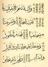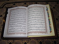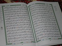 | “ | It is He Who sent down to thee (step by step), in truth, the Book, confirming what went before it; and He sent down the Law (of Moses) and the Gospel (of Jesus) before this, as a guide to mankind, and He sent down the criterion (of judgment between right and wrong). | ” |