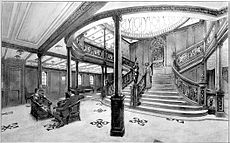 - D Deck, the Saloon Deck, was dominated by three large public rooms—the First Class Reception Room, the First Class Dining Saloon and the Second Class Dining Saloon. An open space was provided for Third Class passengers. First, Second and Third Class passengers had cabins on this deck, with berths for firemen located in the bow. It was the highest level reached by the ship's watertight bulkheads (though only by eight of the fifteen bulkheads).