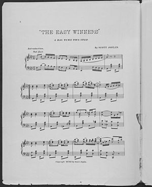 Ragtime (alternatively spelled rag-time) is a musical genre that enjoyed its peak popularity between 1897 and 1918. Its main characteristic trait is its syncopated, or "ragged," rhythm. It began as dance music in the red-light districts of African American communities in St. Louis and New Orleans years before being published as popular sheet music for piano. Ernest Hogan was an innovator and key pioneer who helped develop the musical genre. Hogan is also credited for coining the term Ragtime. Ragtime was also a modification of the march made popular by John Philip Sousa, with additional polyrhythms coming from African music. The ragtime composer Scott Joplin became famous through the publication in 1899 of the " Maple Leaf Rag" and a string of ragtime hits that followed, although he was later forgotten by all but a small, dedicated community of ragtime aficionados until the major ragtime revival in the early 1970s. For at least 12 years after its publication, the "Maple Leaf Rag" heavily influenced subsequent ragtime composers with its melody lines, harmonic progressions or metric patterns.