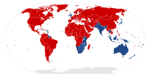 Signatory countries to the Geneva Convention on Road Traffic (1949) have agreed to a uniform direction of traffic in each country. Article 9(1) provides that