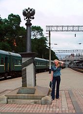 The marker for kilometre 9288, at the end of the Trans-Siberian Railway in Vladivostok