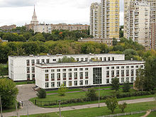 A school in Moscow. The tower of the Moscow State University is seen at the distance