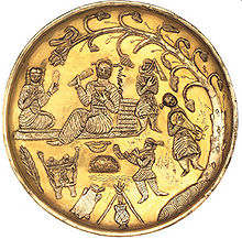 The main exports of the Sassanids were silk; woolen and golden textiles; carpets and rugs; hides; and, leather and pearls from the Persian Gulf. There were also goods in transit from China (paper, silk) and India (spices), which Sassanid customs imposed taxes upon, and which were re-exported from the Empire to Europe.