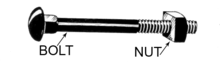 | stove bolt | A stove bolt is a type of machine screw that has a round or flat head and is threaded to the head. They are usually made of low grade steel, have a slot or Phillips drive, and are used to join sheet metal parts using a hex or square nut. | ||