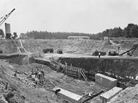 After World War II, plans began to be made for a nationally funded network of trunk roads, including a Severn Bridge, for which the contract was awarded to Mott, Hay and Anderson, with Freeman Fox and Partners. The public inquiry into the scheme was held on 24 September 1946 at Bristol University. However, because Government funding was prioritised for the similar Forth Road Bridge (opened in 1964), construction of the Severn Bridge was not started until 1961: the UK government announced in 1962 that construction costs would be 'recovered' by means of a toll of 2s 6d (GBP 0.125) on all vehicle crossings, though walking or cycling across the bridge would be charge-free. The substructure was completed by contractors John Howard and Co in 1963. The superstructure contract was awarded to Associated Bridge Builders Ltd (a joint venture of Sir William Arrol & Co., Cleveland Bridge & Engineering Company and Dorman Long) in 1963, and completed in 1966.