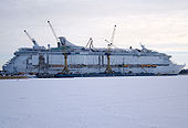 MS Freedom of the Seas under construction in a shipyard in Turku.