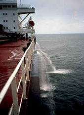 When a large vessel such as a container ship or an oil tanker unloads cargo, seawater is pumped into other compartments in the hull to help stabilize and balance the ship. During loading, this ballast water is pumped out from these compartments.