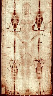 The Shroud of Turin or Turin Shroud (Italian: Sindone di Torino, Sacra Sindone) is a linen cloth bearing the image of a man who appears to have suffered physical trauma in a manner consistent with crucifixion. It is kept in the royal chapel of the Cathedral of Saint John the Baptist in Turin, northern Italy. The image on the shroud is commonly associated with Jesus Christ, his crucifixion and burial. It is much clearer in black-and-white negative than in its natural sepia colour. The negative image was first observed in 1898, on the reverse photographic plate of amateur photographer Secondo Pia, who was allowed to photograph it while it was being exhibited in the Turin Cathedral.