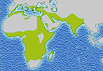 Historical distribution of malaria (no longer endemic in Europe) shown in green