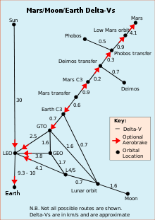 The Russian space mission Fobos-Grunt, which launched on 9 November 2011 experienced a failure leaving it stranded in low Earth orbit. It was to begin exploration of the Phobos and Martian circumterrestrial orbit, and study whether the moons of Mars, or at least Phobos, could be a "trans-shipment point" for spaceships travelling to Mars.