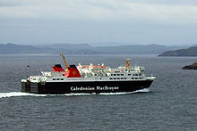 A Caledonian MacBrayne operated ferry ( MV Isle of Lewis) sails from the harbour to Ullapool on the Scottish mainland, taking 2 hours 45 minutes. There are an average of two return crossings a day, with an increase and reduction in frequency in summer and winter months respectively. As ferry traffic has increased, a second ship (MV Muirneag) now provides a single early morning sailing to carry most of the island's freight lorries.