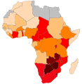 Sub-Saharan African countries top the list of countries and territories by fertility rate with 40 of the highest 50, all with TFR greater than 4 in 2008. All are above the world average except South Africa. Figures for life expectancy, malnourishment, infant mortality and HIV/AIDS infections are also dramatic. More than 40% of the population of are below 15 years in most sub-Saharan countries, as well as the Sudan but with the exception of South Africa,.