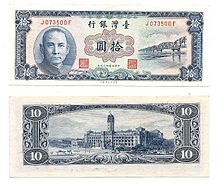 Portrait of Sun Yat-sen on a Taiwan banknote of 1960.