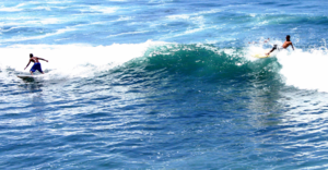 Surfers in La Libertad. El Salvador is considered a surfers' paradise, having the best waves in the continent, and is considered one of the top ten beaches in the world.