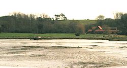 A little way south of Woodbridge the tidal Martlesham Creek emerges into the Deben on the west side, fed from valleys with 6th century burial grounds at Rushmere, Little Bealings and Tuddenham St Martin, and circling Brightwell Heath, the site of several Bronze Age and later mounds. Further up the Deben, on bluffs overlooking the brackish reaches, were cemeteries of similar date at Rendlesham and Ufford. A large cemetery of mixed cremation and inhumation burials stood in a similar position to Sutton Hoo at Snape, above the fordable headwaters of the river Alde. This also contained a large ship-burial, the only other burial in England comparable to the famous examples at Sutton Hoo.