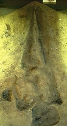 In contrast to the high status evident from these finds, the cemetery also contained a number of inhumations of a very different character. These were of people who had died by violent means, in some cases clearly by hanging or beheading. Often the bones had not survived, but this important part of the site's history was recovered by a special technique during the 1980s excavations. The fleshy parts of the bodies had left a stain in the sandy soil: this was laminated as work progressed, so that finally the emaciated figures of the dead were revealed. Casts were taken of several of these tableaux.