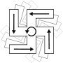 In alchemy, the gammadion was used to symbolise the four cardinal corners of the world and the guardianship of this world.