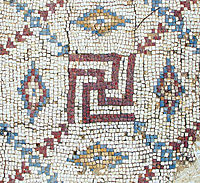 The swastika is also seen in Egypt during the Coptic period. Textile number T.231-1923 held at the V&A Museum in London includes small swastikas in its design. This piece was found at Qau-el-Kebir, near Asyut, and is dated between AD300-600.