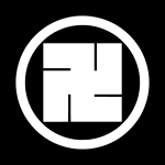 - an upright black swastika outlined by thin white and black lines on a white disc (e.g., Personal standard of Adolf Hitler in which a gold wreath encircles the swastika; the Schutzstaffel; and the Reichsdienstflagge, in which a black circle encircles the swastika);