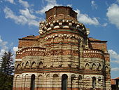 In Christianity, the swastika is used as a hooked version of the Christian Cross, the symbol of Christ's victory over death. Some Christian churches built in the Romanesque and Gothic eras are decorated with swastikas, carrying over earlier Roman designs. Swastikas are prominently displayed in a mosaic in the St. Sophia church of Kiev, Ukraine dating from the 12th century. They also appear as a repeating ornamental motif on a tomb in the Basilica of St. Ambrose in Milan.