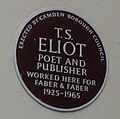 The Faber and Faber building where Eliot worked from 1925 to 1965; the commemorative plaque is under the right-hand arch.