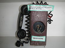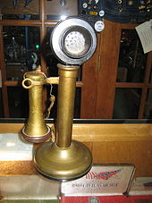 Signalling began in an appropriately primitive manner. The user alerted the other end, or the exchange operator, by whistling into the transmitter. Exchange operation soon resulted in telephones being equipped with a bell in a ringer box, first operated over a second wire, and later over the same wire, but with a condenser ( capacitor) in series with the bell coil to allow the AC ringer signal through while still blocking DC (keeping the phone " on hook"). Telephones connected to the earliest Strowger automatic exchanges had seven wires, one for the knife switch, one for each telegraph key, one for the bell, one for the push-button and two for speaking. Large wall telephones in the early 20th century usually incorporated the bell, and separate bell boxes for desk phones dwindled away in the middle of the century.