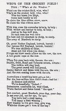 The momentous defeat was widely recorded in the British press, which praised the Australians for their plentiful "pluck" and berated the Englishmen for their lack thereof. A celebrated poem appeared in Punch on Saturday, 9 September. The first verse, quoted most frequently, reads: