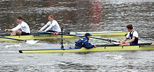 The Boat Race is an annual rowing race between the Oxford University Boat Club and the Cambridge University Boat Club, rowed between competing eights on the River Thames in London, England. It is also known as the University Boat Race and the Oxford and Cambridge Boat Race, from 2010–2012 for sponsorship reasons as the Xchanging Boat Race, and from 2013 as the BNY Mellon Boat Race. It usually takes place on the last Saturday of March or the first Saturday of April.