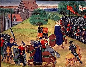 The upper class or nobility, represented chiefly by the Knight and his Squire, was in Chaucer's time steeped in a culture of chivalry and courtliness. Nobles were expected to be powerful warriors who could be ruthless on the battlefield, yet mannerly in the King's Court and Christian in their actions. Knights were expected to form a strong social bond with the men who fought alongside them, but an even stronger bond with a woman whom they idealized in order to strengthen their fighting ability. Though the aim of chivalry was to noble action, often its conflicting values degenerated into violence. Church leaders often tried to place restrictions on jousts and tournaments, which at times ended in the death of the loser. The Knight's Tale shows how the brotherly love of two fellow knights turns into a deadly feud at the sight of a woman whom both idealize, with both knights willing to fight the other to the death in order to win her. Chivalry was in Chaucer's day on the decline, and it is possible that The Knight's Tale was intended to show its flaws, although this is disputed. Chaucer himself had fought in the Hundred Years' War under Edward III, who heavily emphasized chivalry during his reign. Two tales, Sir Topas and The Tale of Melibee are told by Chaucer himself, who is travelling with the pilgrims in his own story. Both tales seem to focus on the ill-effects of chivalry—the first making fun of chivalric rules and the second warning against violence.