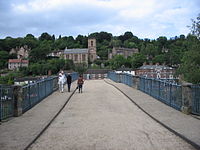 The Iron Bridge crosses the River Severn at the Ironbridge Gorge, by the village of Ironbridge, in Shropshire, England. It was the first bridge in the world to be made out of cast iron.