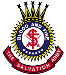 The star contains the Salvation Army's war cry, 'Blood and Fire'. This describes the blood of Jesus shed on the cross to save all people and the fire of the Holy Spirit which purifies believers.